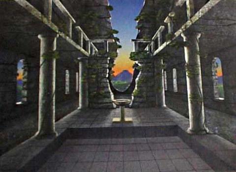 The commission for a dark and mysterious environment captured David's imagination. He reveals in his book, 'The Art of Knightmare' that he particularly enjoyed creating techniques to recreate wet stone and an aged effect.