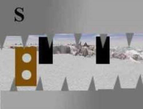 Treguard You watch the metal blades move apart, as they do so, you get out the brick and hold it in place in the gap. The blades then come back down again and are stopped by the brick. You can now get through team without anything to worry about. Onward!