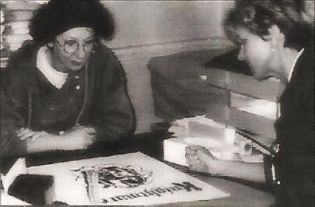 Production staff go to Screens to discuss Knightmare T-shirts.
