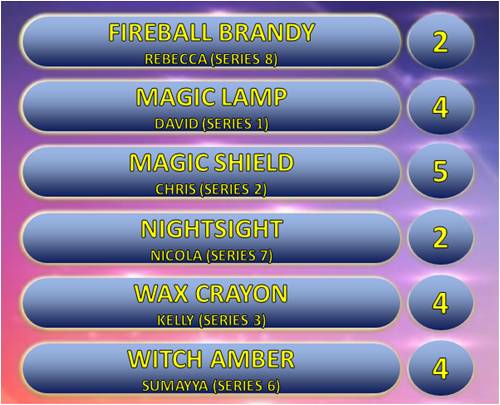 So that's any named piece of Merlin's magic that was spellcast on-screen, either by a team or by Merlin himself... or both! Amy, it's over to you.