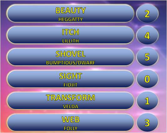 Fidjit was the pointless answer there - that's the second time he's been pointless in this particular game, and none of our players have chosen him. Poor old Fidjit - what a nonentity!
