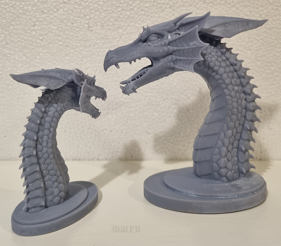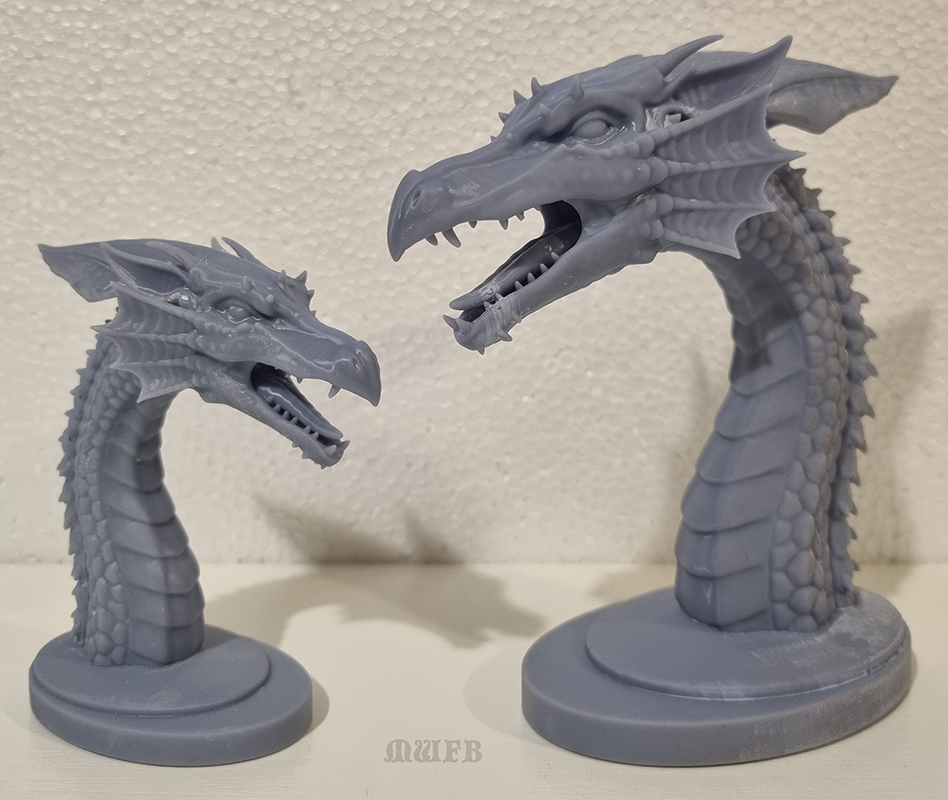 The bigger version is almost 6 inches tall and about as big as I can go for a one piece print on my equipment. The print took about 11 hours and it took several hours of work to do the clean-up. It's ready for painting now, so I'm pondering how best to approach that.