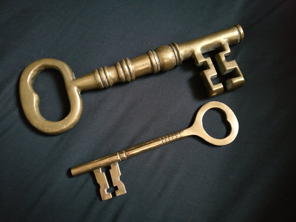 Two more keys from season 3, the larger key found in both the level 1 and 2 clue rooms, the smaller key just level 1. Mine aren't weathered as much but the design matches up.