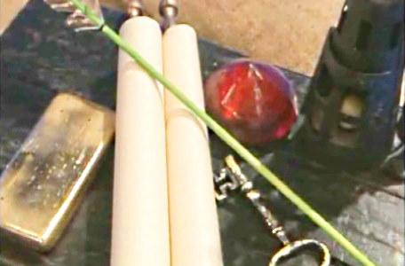In an empty courtyard, Pickle senses hidden magic. Alex uses the divining rod to reveal a chest.
