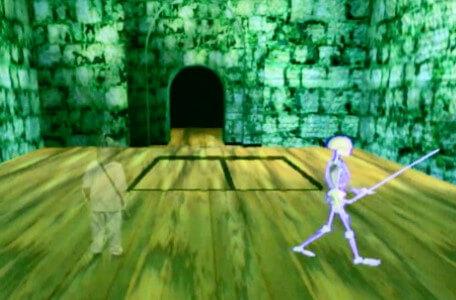 Next, the trapdoor room at the end of Level 1, which is patrolled by a Skeletron. They use the Invisibility potion to help Nathan cross its path without being seen.