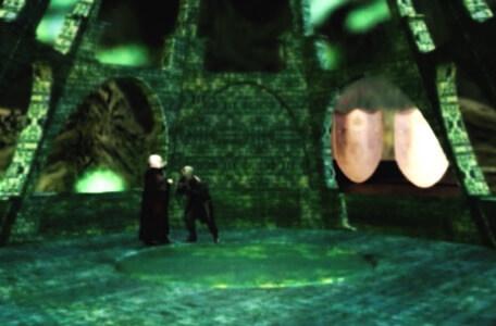 The trapdoor room. They use the divining stick which reveals a hidden door in the back wall. The Miretrog enters and impedes the advisors' view. The team do well to guide Oliver through the door.